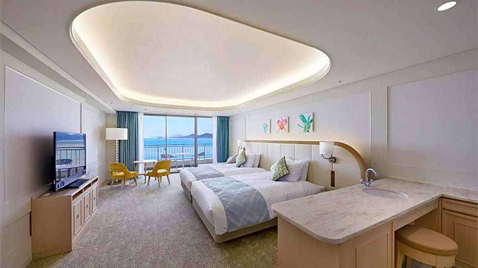 This place was our first stop in Kyushu, right from Fukuoka airport. From the moment we reached the lobby, we were impressed by the view of the sea right from the lobby. The design of the hotel felt elegant and refreshing. We booked the Deluxe Twin Room with Sea View. The view from the balcony was beautiful. The room was well lit, nicely designed, and spacious. The public hot bath has both an indoor and an outdoor bath with a nice view. The buffet dinner was really really good - don't miss it. The only regret we had was that we booked only a night's stay.