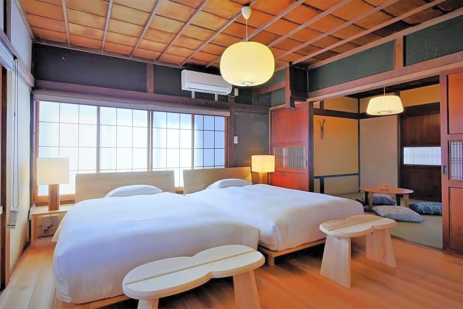 Lovely place to stay in historic Sawara near the canal. Beautifully styled, spacious room (Yata) with seating area and desk. Generous complimentary soft drinks, wine and beer. Well airconditioned. Parking right outside the door. Beautiful breakfast served in the main Kagura building. Welcoming and helpful staff.