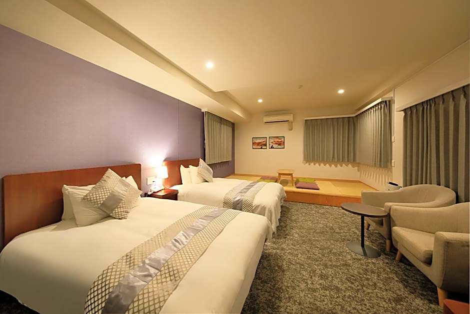 The spacious family room provides air conditioning, tatami, as well as a private bathroom featuring a bath and a shower. The unit offers 2 beds and 4 futons.