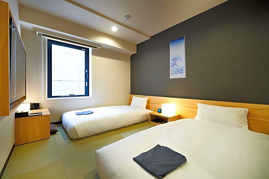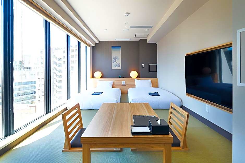 The twin room includes a private bathroom, well-fitted with a bath, a shower, a bidet, a hairdryer and slippers. This twin room is air-conditioned and features a flat-screen TV with streaming services, tatami, a safe deposit box and an electric kettle. The unit offers 2 beds.