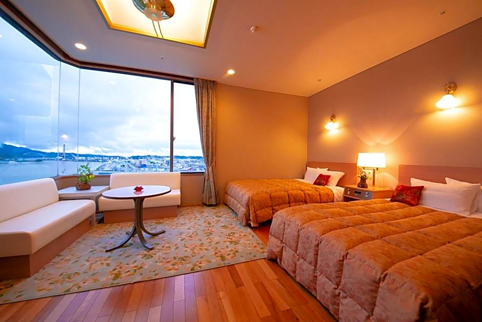 Huge room! Lovely, lovely onsen. And a breakfast with sooo much delicious food. Go for oyster soup if you have a chance :) Good location with the view over the bay. The building felt slightly dated but in the way of old glory, not entirely passing yet.