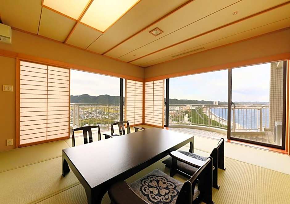 Guests will have a special experience as the family room offers a hot tub. The family room includes a private bathroom, well-fitted with a bath, a shower, a bidet, a hairdryer and slippers. Guests can make meals in the kitchen that is equipped with a stovetop, a refrigerator, kitchenware and a microwave. The spacious air-conditioned family room provides a flat-screen TV, a washing machine, tatami, a tea and coffee maker as well as sea views. The unit offers 2 beds and 3 futons.
