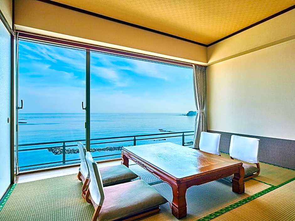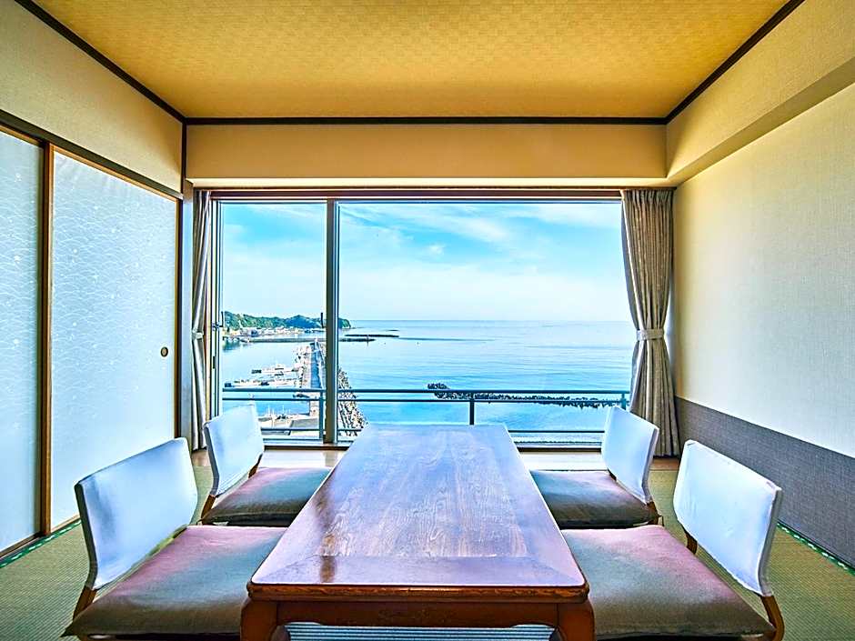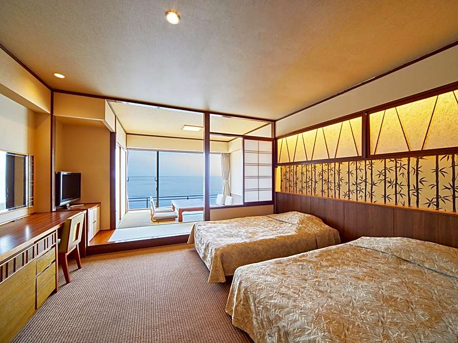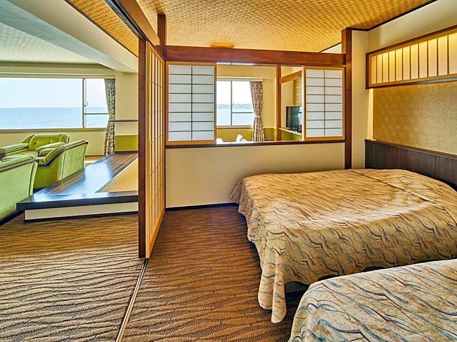 This spacious suite consists of 1 living room, 1 separate bedroom and 1 bathroom with a bath and free toiletries. The air-conditioned suite provides a flat-screen TV, tatami, a wardrobe, a safe deposit box as well as sea views. The unit offers 2 beds and 4 futons.
