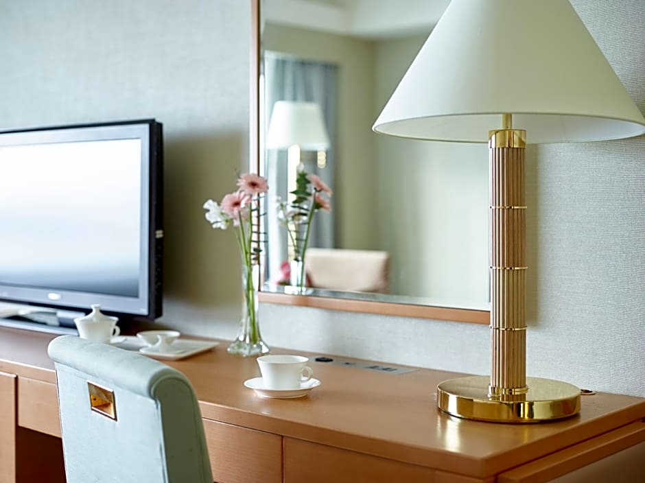 Hotel Okura Kobe offers a variety of rooms such as Deluxe Rooms, Standard Rooms, and Suites, accommodating 2 adults and 1 child. Smoking is not allowed in any of the rooms. Bed sizes range from Queen, King, to Twin, and room sizes vary but generally fall around 291 sqft to 797 sqft.