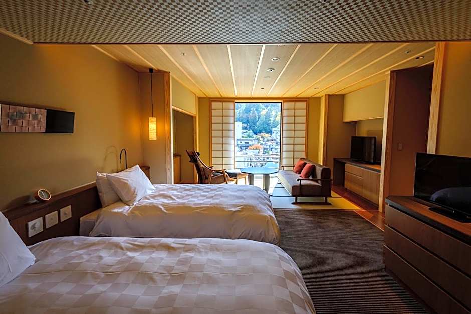I had a lovely stay at the hotel but all too short as just for one night. But so loved the seventh floor room and private Onsen. Seeing the hillside while relaxing in the tub was divine. Also both meals, Japanese style, were wonderful. Compliments to the chef. Our server was also wonderfully attentive and patient with us as our Japanese is very limited and was so grateful for her assistance in English. Would definitely stay there again. Thanks so Much. Doug