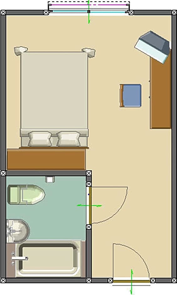 The single room includes a private bathroom, well-fitted with a bath, a shower, a bidet, a hairdryer and slippers. This single room is air-conditioned and has a TV, an electric kettle and heating. The unit has 1 bed.