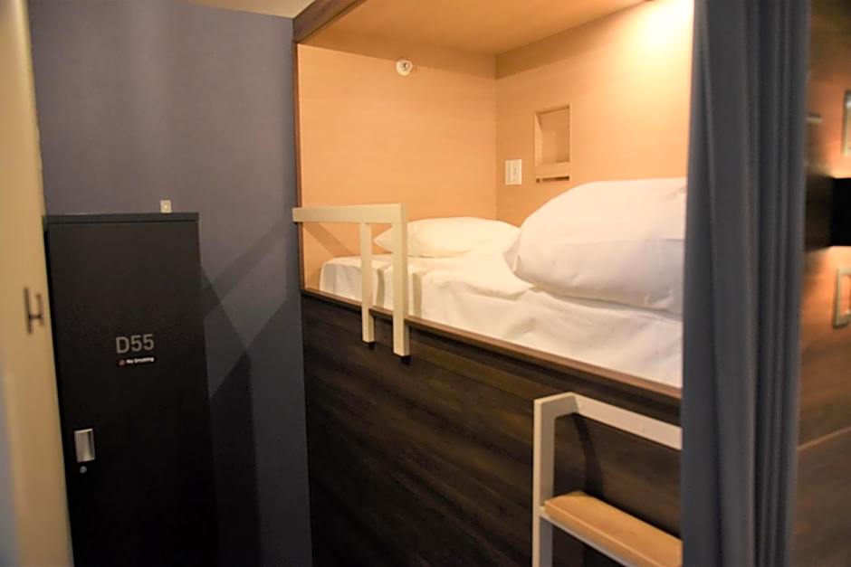 2 minutes from JR Kumamoto Station. The room is very spacious and the individual beds are spread out, with safe and capacious lockers. There are plenty of sinks and showers, so you don’t need to line up. The toilets and showers are spotlessly clean. Free toiletries are provided at no extra charge. The common area on the ground floor is also lovely.
