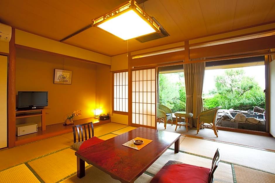 The quadruple room provides air conditioning, tatami, as well as a private bathroom featuring a bath and a shower. The quadruple room offers a flat-screen TV, an electric kettle, yukata, heating as well as garden views. The unit offers 2 futons.