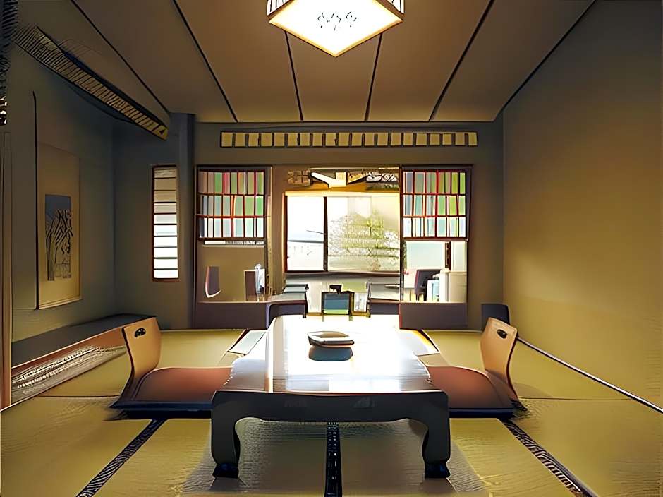 The triple room provides air conditioning, tatami, as well as a shared bathroom featuring a hairdryer and slippers. The triple room features a tea and coffee maker, a safe deposit box, yukata, heating, as well as a TV. The unit offers 3 futons.