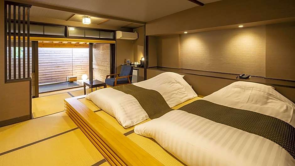 The private open-air bath is the standout feature of this suite. This spacious suite comes with 1 living room, 1 separate bedroom and 1 bathroom with a shower and free toiletries. The suite features air conditioning, tatami, a tea and coffee maker, a safe deposit box, as well as a TV. The unit has 2 beds.