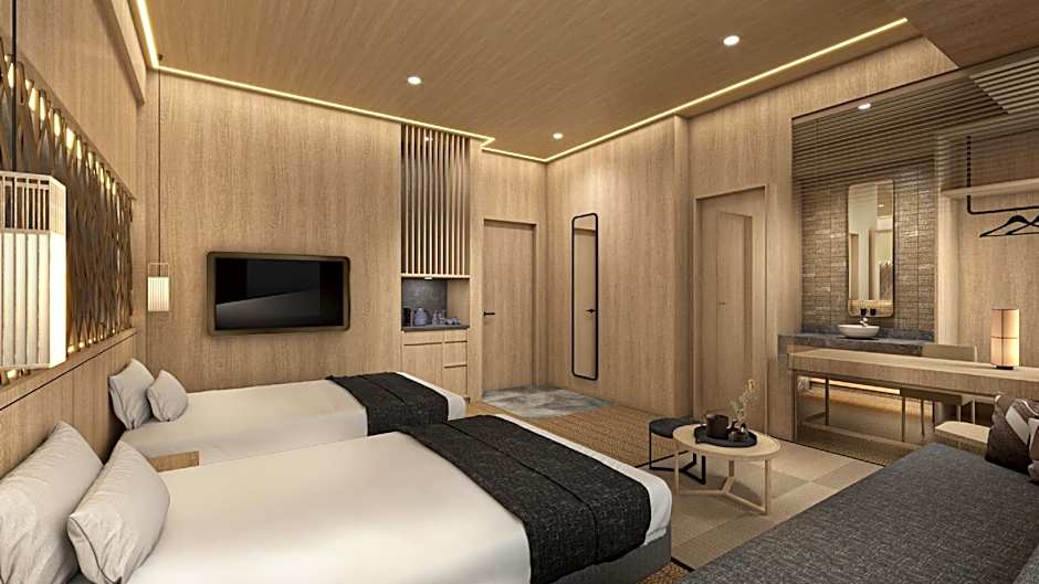 The air-conditioned suite features 1 bedroom and 1 bathroom with a bath and a shower. The suite provides a flat-screen TV with satellite channels, tatami, a tea and coffee maker, a safe deposit box as well as city views. The unit offers 3 beds.
