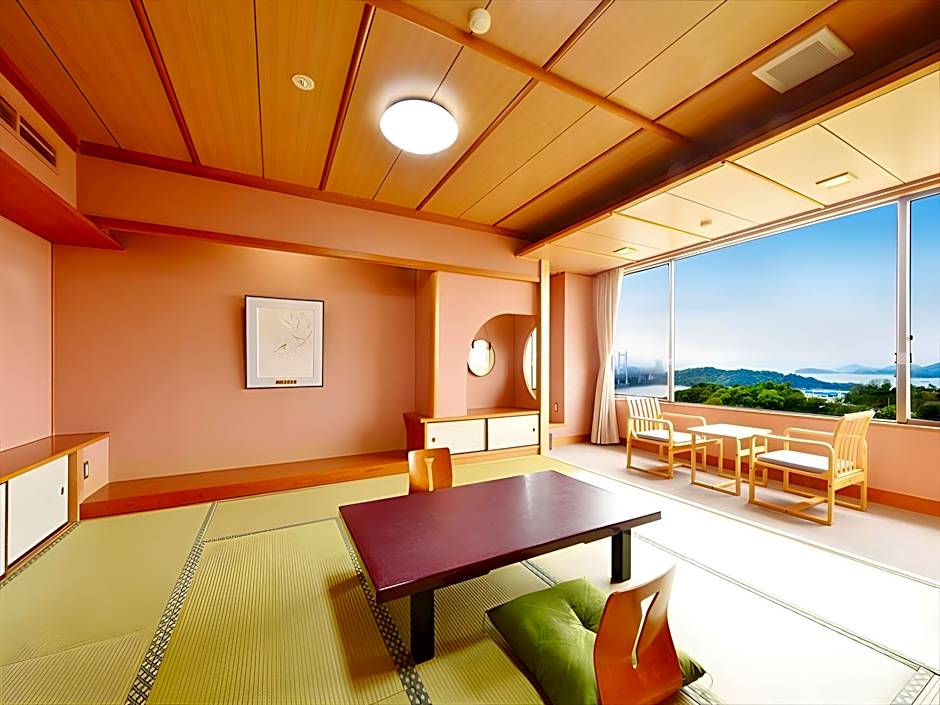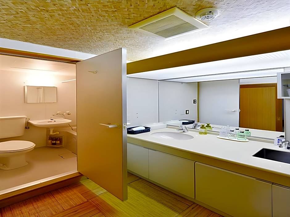 This spacious Japanese-style room is fitted with tatami (woven-straw) flooring and traditional futon bedding, and in-room facilities include a flat-screen TV, a fridge and an electric kettle. Mini-bar and yukata robes are also provided. The private bathroom has a hairdryer and free toiletries.