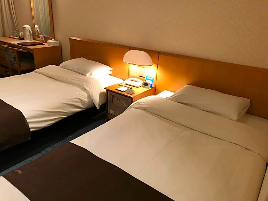 It’s an 80s hotel (with wall paper to prove it!) who has tried to freshen up the place but hasn’t quite hit the mark. Scuffed walls and rust in the bathroom shows that it has seen better days. Surprisingly there was no fridge. Staff were very nice but don’t think. I needed to use the on-site laundromat which the staff kindly showed me the location. They failed to mention that I would need to get 100yens to use it and also get the laundry detergent from the staff at reception (information in the laundry room is not clear and only in Japanese). This caused back and forth walking to the front reception each time. The dryer is electric so takes several hours to dry one load - basically drive 1km to a laundromat that actually works the way it is suppose to.