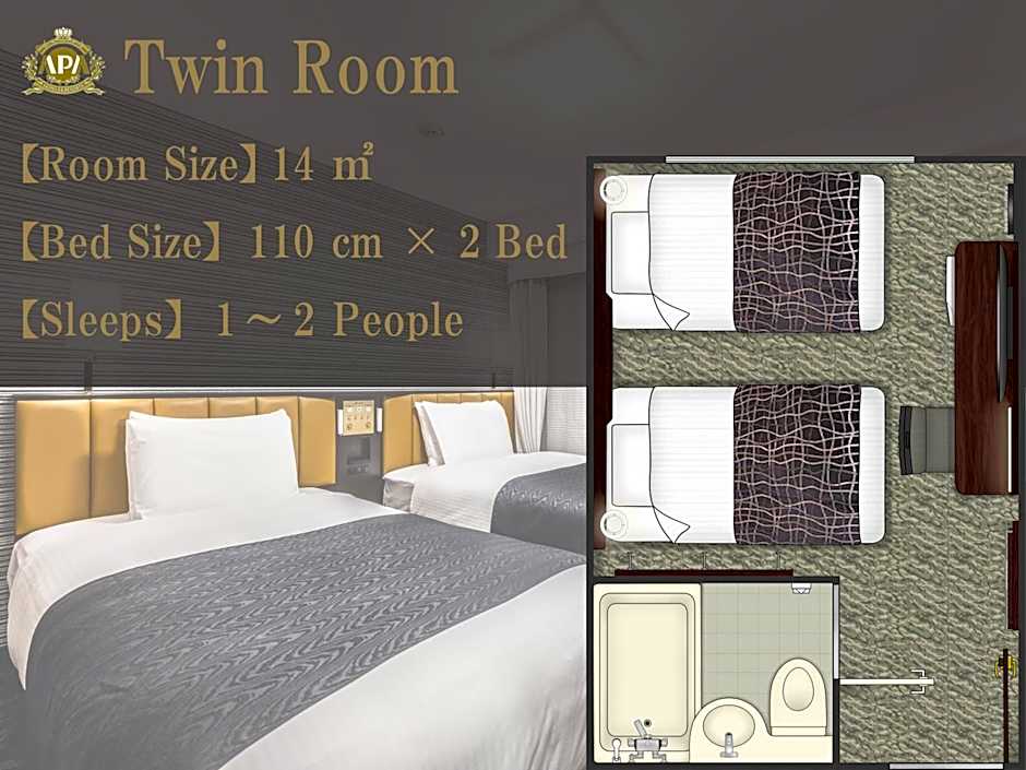 The "nonsmoking" twin room includes a fridge,a 50-inch flat-screen TV and a work desk.The beds are equipped with two beds 43 in wide. The private bathroom comes with a washelt and bath amenities.Bath amenities including a toothbrush set are provided, are made of enviromentally friendly materials.