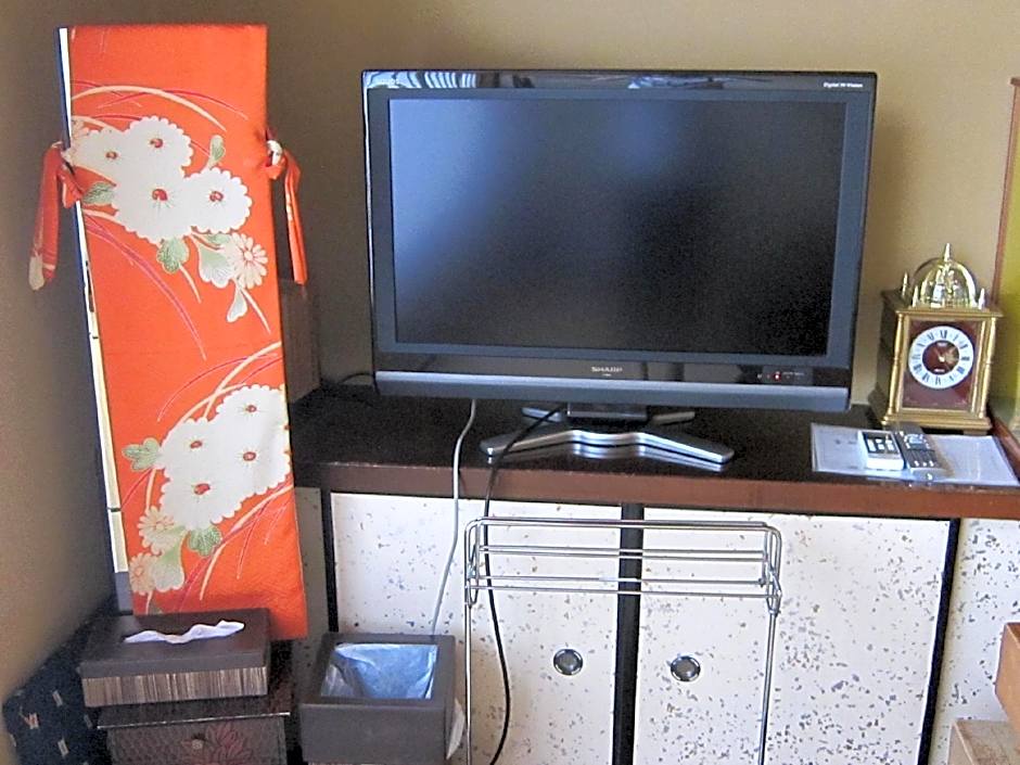The family room provides air conditioning, tatami, as well as a shared bathroom featuring a hairdryer and slippers. This family room features a tea and coffee maker, laptop, flat-screen TV, as well as chocolate for guests. The unit offers 5 futons.