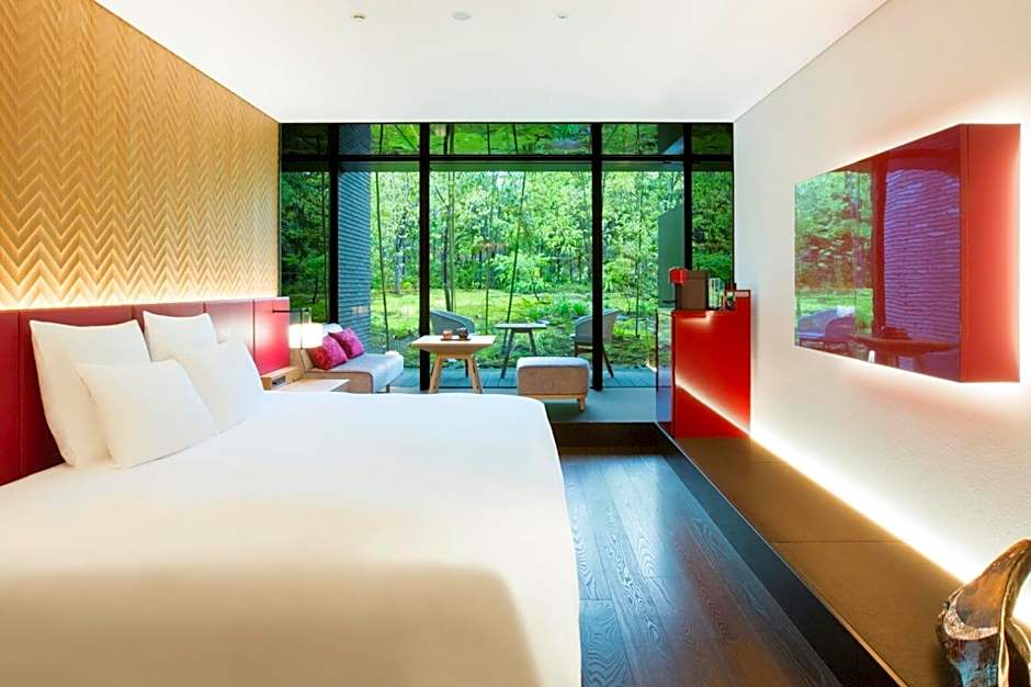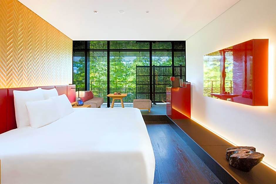 The Garrya Nijo Castle Kyoto - Banyan Tree Group offers Deluxe Twin Rooms and Deluxe King Rooms. These rooms have a size of 431 sqft and can accommodate 2 adults and 2 children. Smoking is not allowed in these rooms. The Deluxe Twin Room has 2 Twin beds while the Deluxe King Room has 1 King size bed.