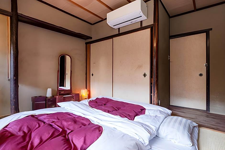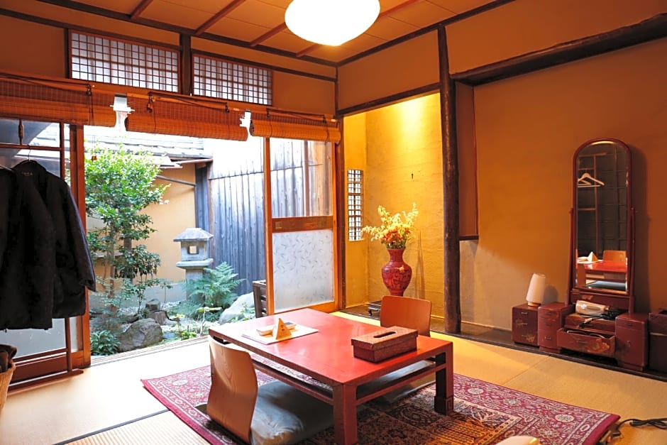 Nicely restored Japanese house with 4 rooms. We stayed in a smaller room upstairs. The house has a nice inner garden, which is visible from the garden room and one of the rooms upstairs. The shower and the restrooms are accessible from the garden. The house has a small common space with a kitchen counter and washbasins, since the rooms don't have any of these features. The house has been very nicely restored, the mood is all in all very good. The room was prepared with classic Japanese yukatas and winter haoris to use them inside.