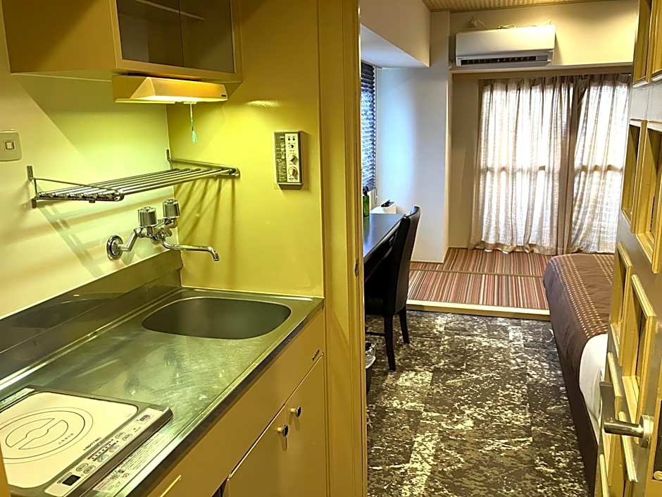 Close to Kyoto station, very functional with personal washing machine, small kitchenette and decent bathroom. TV is vast and everything worked very well.