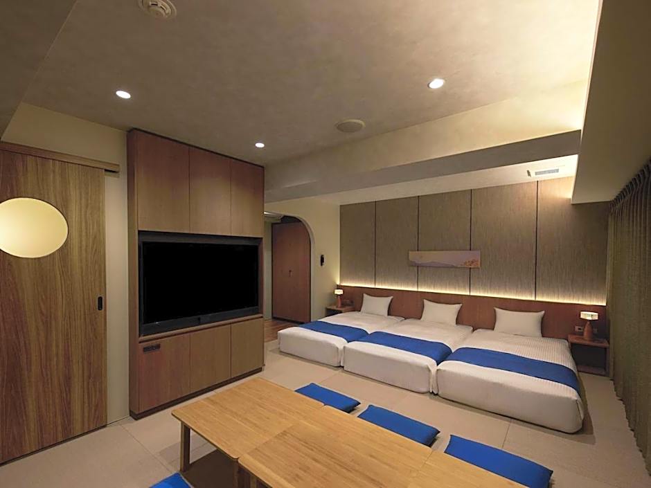 The spacious triple room features air conditioning, tatami, as well as a private bathroom boasting a bath and a shower. The triple room provides soundproof walls, a tea and coffee maker, a wardrobe, a safe deposit box and a flat-screen TV. The unit has 3 beds and 3 futons.