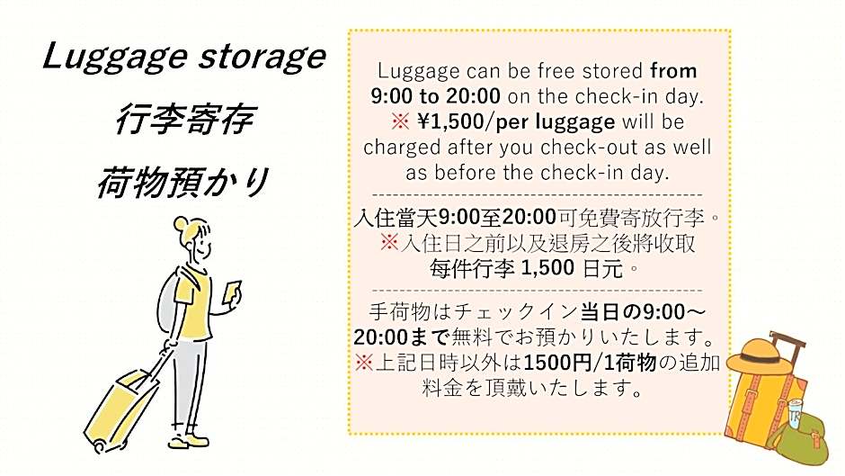 The triple room provides air conditioning, tatami, as well as a private bathroom featuring a shower and a hairdryer. The triple room features a tea and coffee maker. The unit offers 3 futons.
