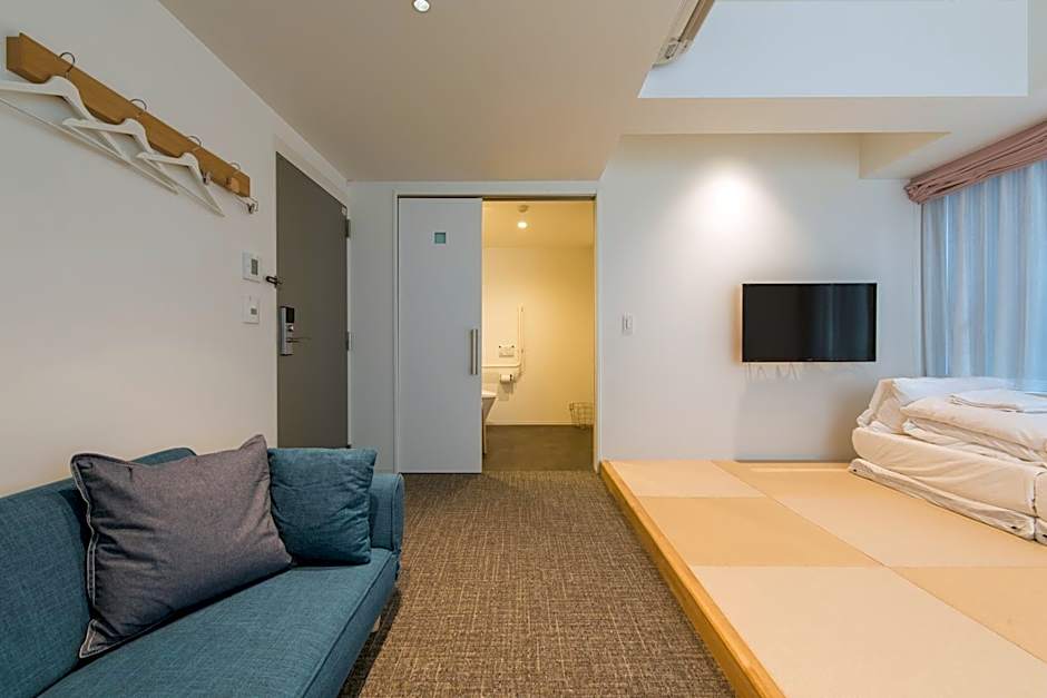 The triple room includes a private bathroom, well-fitted with a walk-in shower, a bath, a bidet, a hairdryer and slippers. The air-conditioned triple room provides a flat-screen TV, tatami, soundproof walls, a sofa as well as a quiet street view. The unit offers 1 bed and 2 futons.