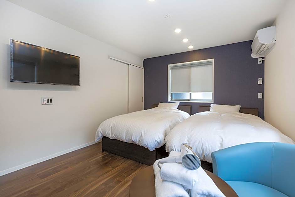 This family room features a hot tub. Featuring free toiletries and bathrobes, this family room includes a private bathroom with a walk-in shower, a bath and a bidet. In the fully equipped kitchen, guests will find a stovetop, a refrigerator, kitchenware and an oven. The spacious air-conditioned family room features a flat-screen TV with satellite channels, a washing machine, tatami, a private entrance as well as a quiet street view. The unit has 2 beds and 3 futons.
