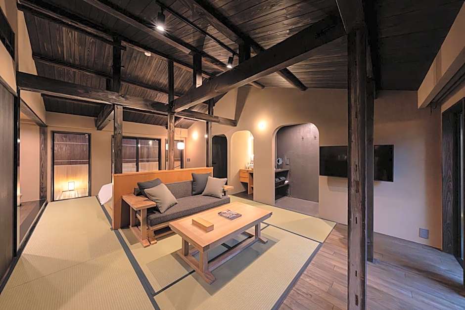 This twin room's special feature is the hot tub. The spacious twin room provides air conditioning, tatami, as well as a private bathroom featuring a bath and a shower. The twin room features a private entrance, a tea and coffee maker, a seating area along with a wardrobe. The unit offers 2 beds and 3 futons.