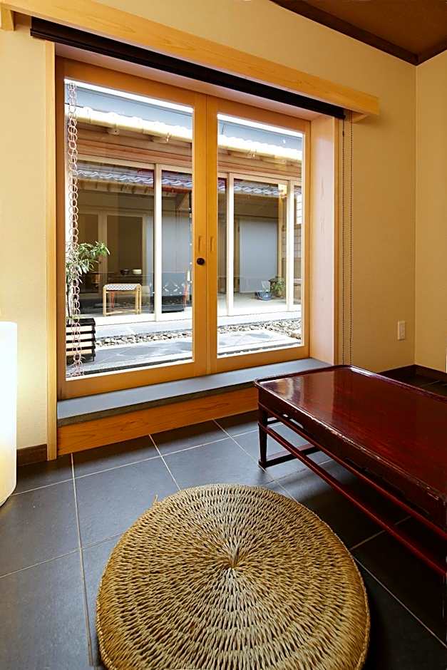 Features tatami (woven-straw) flooring and traditional futon bedding.