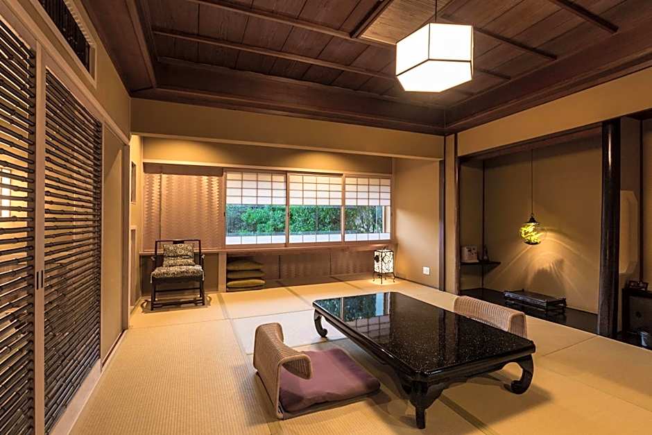 An air-conditioned room that features views of bamboo trees in the garden, from its sliding glass doors that lead to the balcony area. This traditional Japanese room is fitted with tatami (woven-straw) flooring and futon bedding. The bathtub is made of Japanese hinoki wood. The room comes with a flat-screen TV, WiFi connection, an Apple TV, an induction heater, a hairdryer and nightwear robes. An in-room safe is also provided. Built in 1890, this room was last renovated in 2016. In January 2025, we upgraded the Japanese futons in all guest rooms.