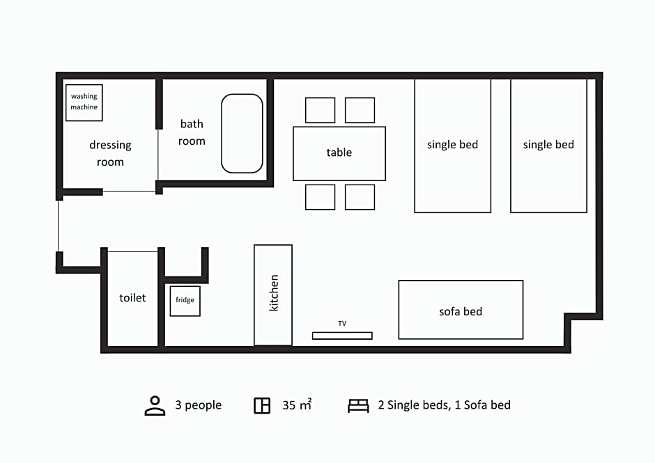 The spacious quadruple room provides air conditioning, a washing machine, as well as a private bathroom featuring a bath and a shower. The kitchen is equipped with a refrigerator, kitchenware and a microwave. The quadruple room offers soundproof walls, a dining area, a wardrobe, an electric kettle, as well as a flat-screen TV. The unit offers 4 beds.
