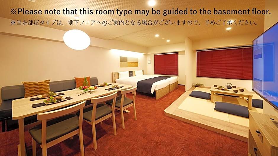 The hotel offers two types of rooms: Superior Japanese Room and Grand Japanese Room. Both room types do not allow smoking. The Superior Japanese Room can accommodate up to 4 adults and 2 children, with two twin beds and two futon mats. The Grand Japanese Room can accommodate up to 6 adults and 2 children, with two twin beds, one sofa bed, and three futon mats.