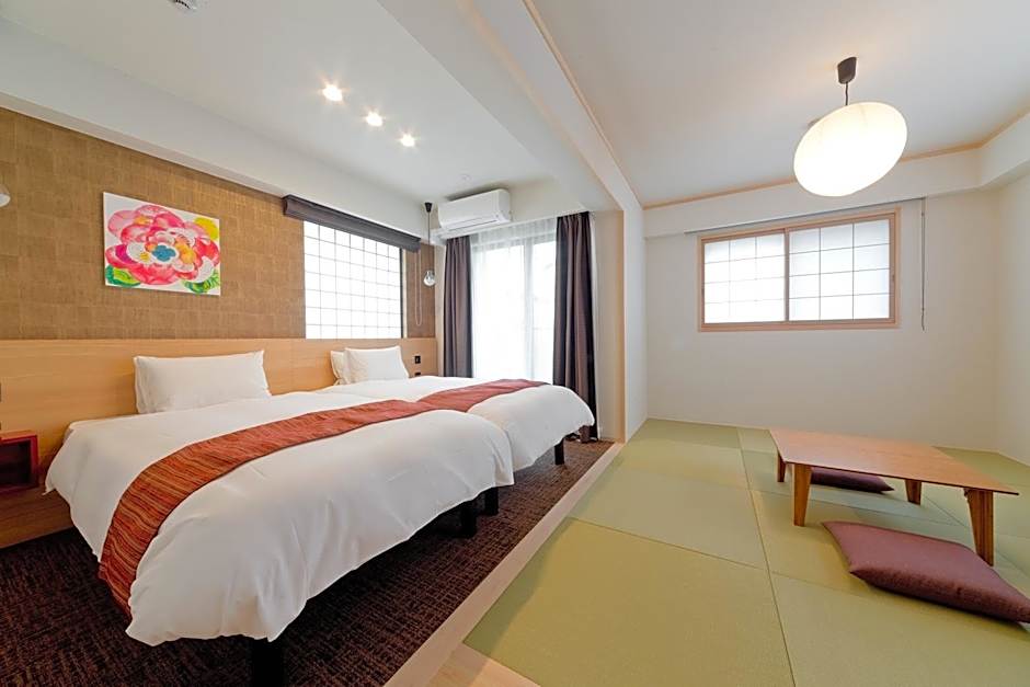 M's Inn Higashiyama offers a variety of rooms including Superior Double and Twin Rooms with Tatami Area for families, accommodating 4 adults and 3 children each. Deluxe Double and Twin Rooms are also available, with the Twin Room accommodating up to 5 adults and 4 children. All rooms are non-smoking and feature traditional Japanese tatami areas.