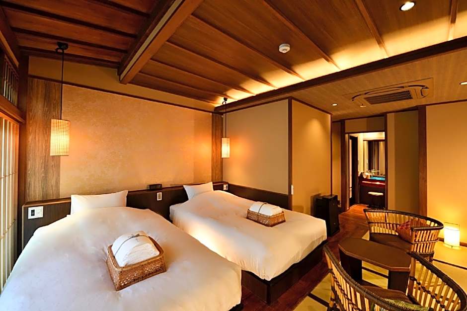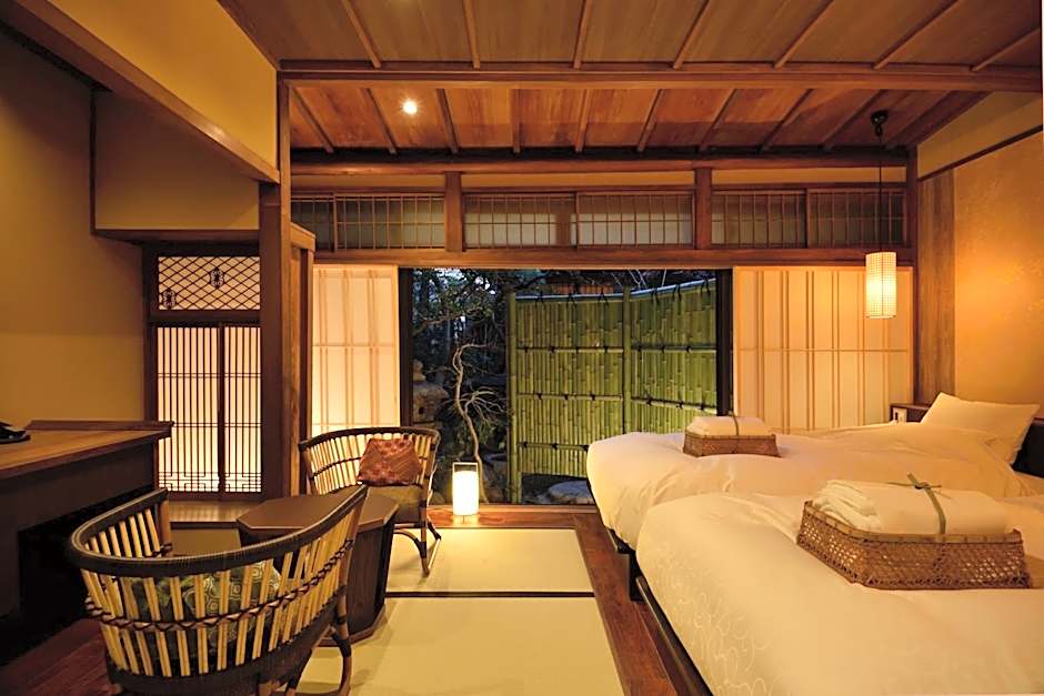 Offering free toiletries and bathrobes, this twin room includes a private bathroom with a bath, a shower and a bidet. The spacious air-conditioned twin room offers a flat-screen TV, tatami, soundproof walls, a tea and coffee maker as well as garden views. The unit has 2 beds.