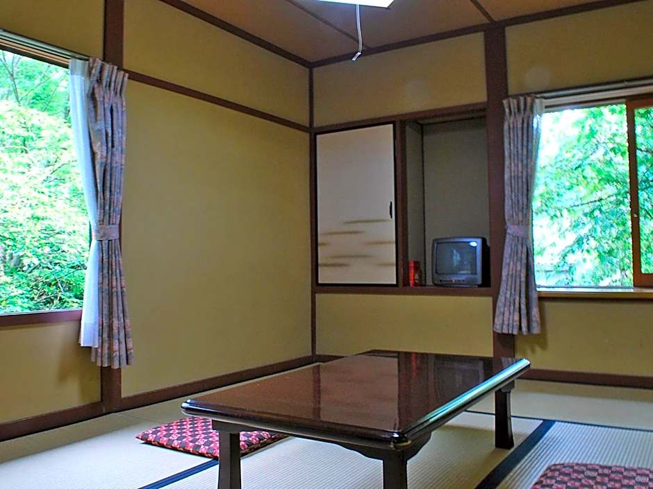 Features tatami (woven-straw) flooring and Japanese futon bedding. Bathrooms and toilets are shared. Simple, air-conditioned Japanese room with nature views. Includes a TV and green tea. This room is individually designed/decorated.