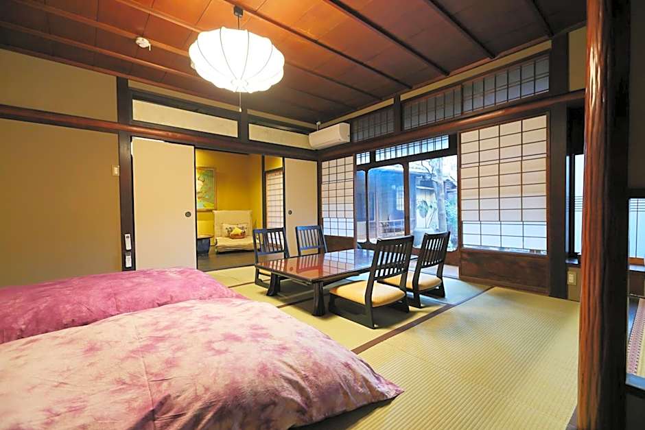 The spacious quadruple room offers air conditioning, tatami, as well as a private bathroom boasting a bath and a shower. Among the room amenities are a dining area, a wardrobe and an electric kettle as well as garden views. The unit has 2 beds and 2 futons.