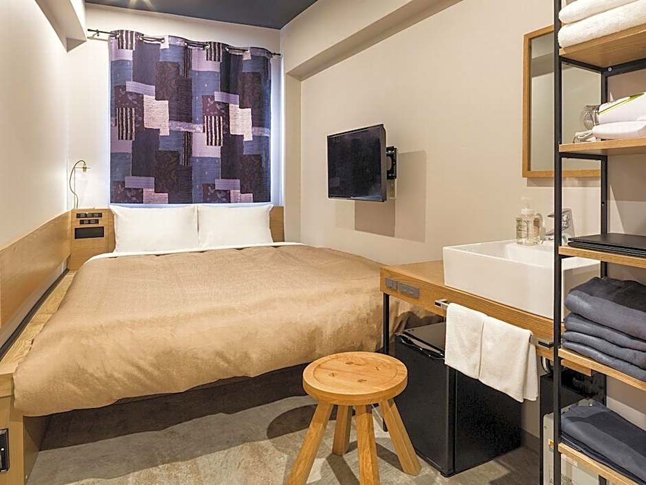 The room was small but super comfortable and had a sink, fridge, shelves, under bed storage and a hanging rail for clothes. The bed was comfortable as well. There were great amenities as well. Down at reception, there were options like kettles, charging cables, games etc. that you could grab for the room which were great. There were also free tea and coffee options as well. There was also a free onsen/public baths in the hotel and they were fine with tattoos. My partner is heavily tattooed and they were absolutely fine with him using the onsen.