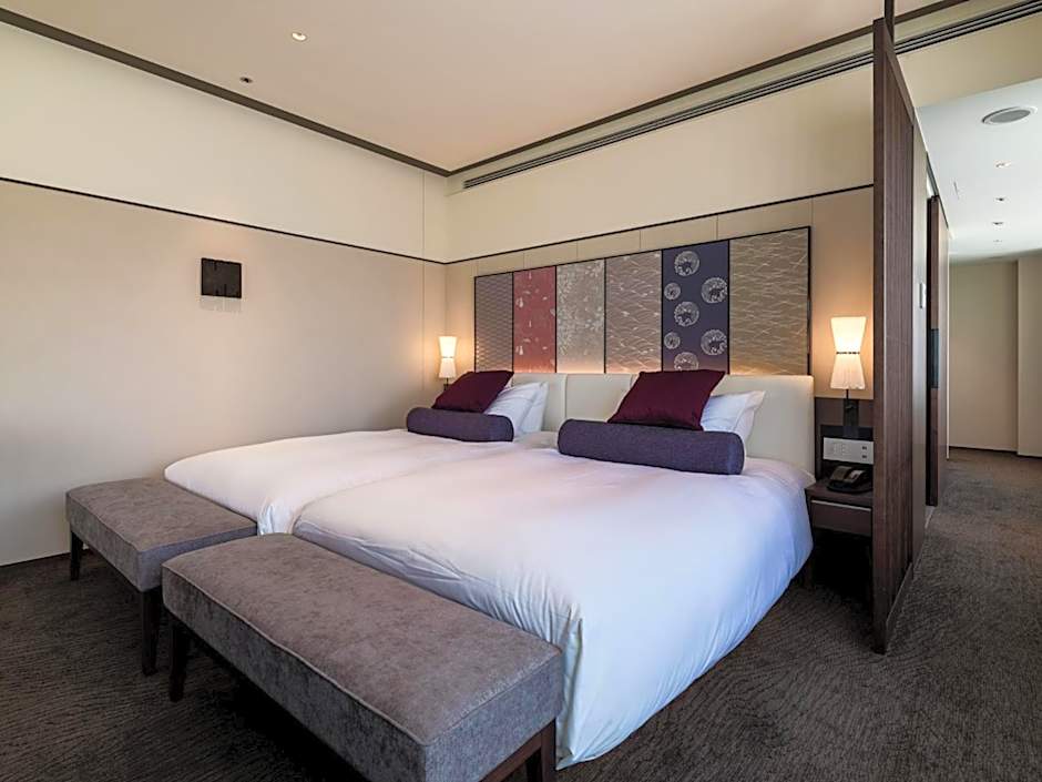 The Solaria Nishitetsu Hotel Kyoto Premier offers Twin Rooms with Garden View that are non-smoking. These rooms have a size of 344 sqft and can accommodate 2 adults and 2 children. The beds in these rooms are twin beds.