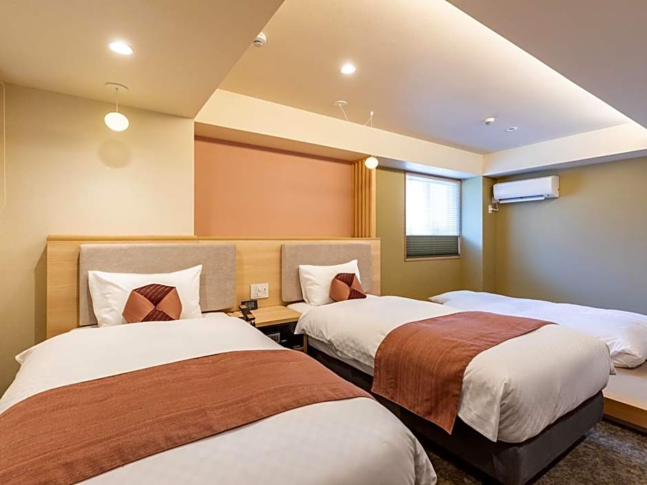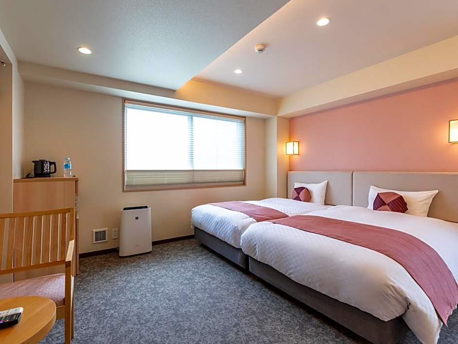 Providing free toiletries and bathrobes, this twin room includes a private bathroom with a bath, a shower and a bidet. The twin room provides air conditioning, tatami, a tea and coffee maker, a safe deposit box and a flat-screen TV. The unit offers 2 beds.