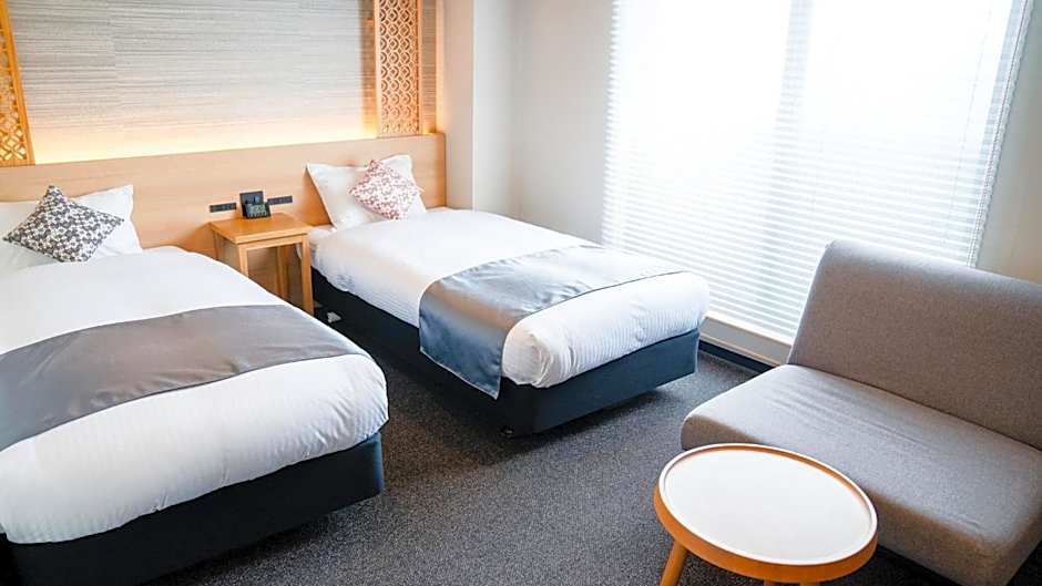 Providing free toiletries and bathrobes, this twin room includes a private bathroom with a bath, a shower and a bidet. The twin room provides air conditioning, tatami, an electric kettle, pajamas, as well as a flat-screen TV. The unit offers 2 beds.