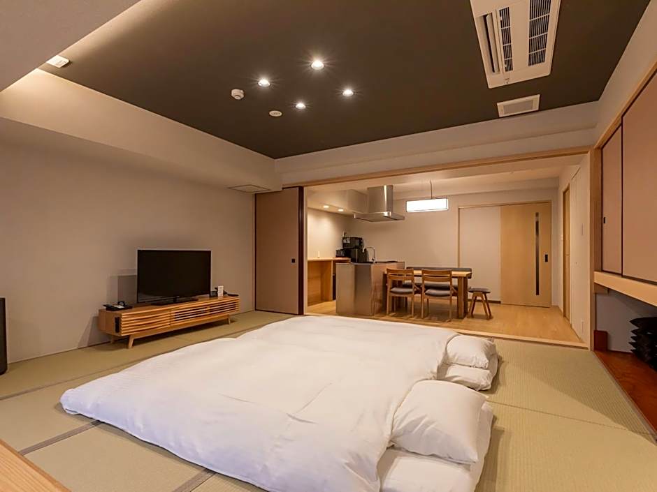 This suite is consisted of of 1 living room, 1 separate bedroom and 1 bathroom with a bath and free toiletries. This suite is air-conditioned and features a seating area with a flat-screen TV, tatami, an electric kettle, pajamas, as well as heating. The unit offers 2 beds and 3 futons.