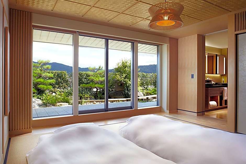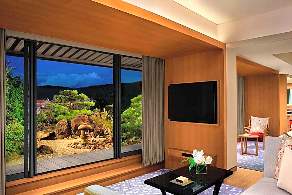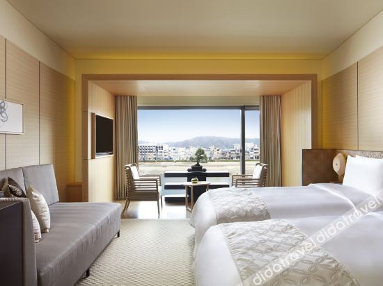 Luxury, signature rooms with a view of the KAMOGAWA River Beds and Bedding Maximum Occupancy: 3 1 King or 2 Double Rollaway beds permitted: 1 Cribs permitted: 1 Maximum cribs/rollaway beds permitted: 1 Featherbed, and Duvet Room Features 52sqm/560sqft-55sqm/592sqft Air-conditioned Connecting rooms are available (for some rooms) Living/sitting area Windows, floor to ceiling Bath and Bathroom Features Bathtub, oversized Bathtub and shower separate Bidet Double vanities Lighted makeup mirror Hair dryer Robe Slippers Furniture and Furnishings Chair Alarm Clock Safe, in room, for a fee Desk, moveable Food & Beverages Room service, 24-Hour Grocery shopping service Bottled water, complimentary Coffee maker / tea service Instant hot water Mini-bar Kitchen features Silverware Dishes and glasses Internet and Phones Phones: 2 Phone features: voicemail, and speaker phone High speed Internet, complimentary Wired Internet, complimentary Wireless Internet, complimentary Hospitality Services Evening turndown service Newspaper delivered to room on request Entertainment TV features: remote control TVs: 2 DVD player Premium movie channels Cable/satellite CNN, and ESPN Movies, pay-per-view Radio Stereo iPod dock