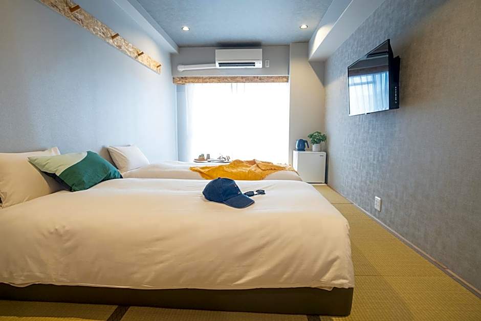 The family room includes a private bathroom, well-fitted with a bath, a shower, a bidet, a hairdryer and slippers. This family room is air-conditioned and features a seating area with a flat-screen TV, tatami, a wardrobe, a safe deposit box, as well as an electric kettle. The unit offers 3 futons.