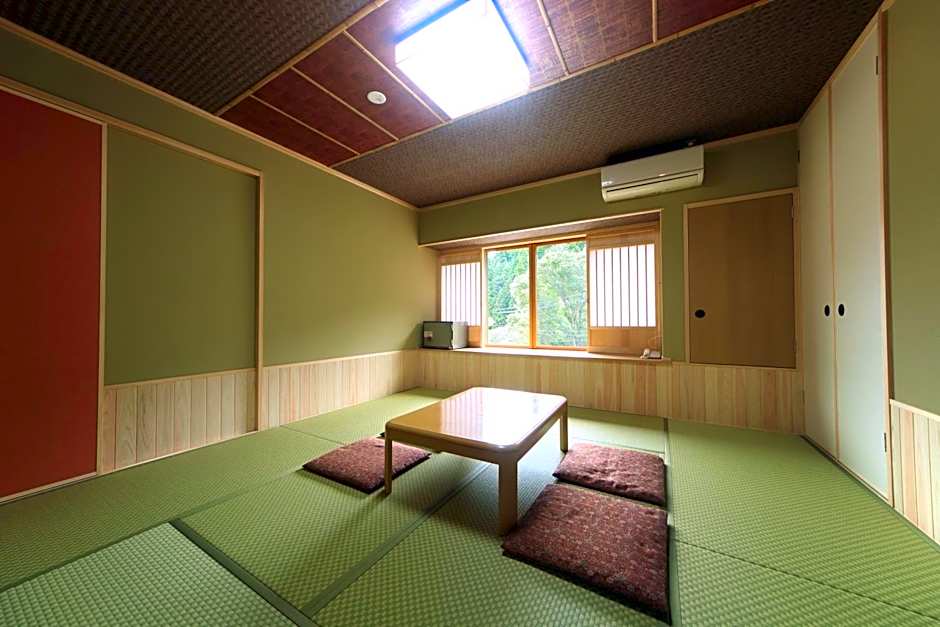 The family room offers heating, as well as a shared bathroom featuring slippers. The air-conditioned family room provides a flat-screen TV, tatami, a safe deposit box, yukata as well as mountain views. The unit offers 5 futons.