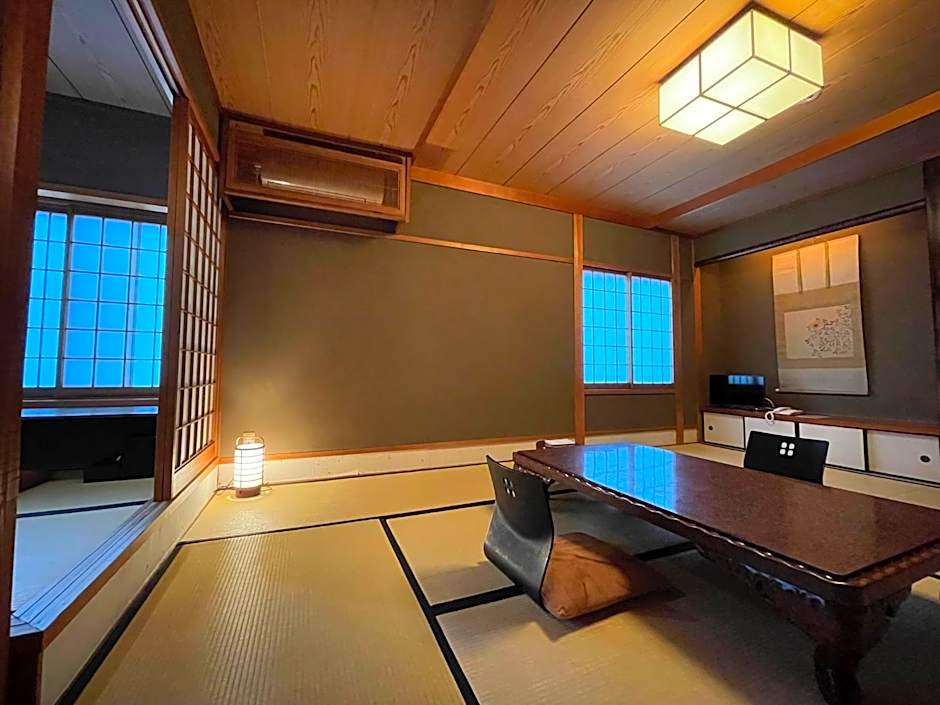 The twin room offers air conditioning, tatami, as well as a private bathroom featuring a bath and a shower. The twin room features a flat-screen TV, a safe deposit box, yukata and heating. The unit offers 2 futons.