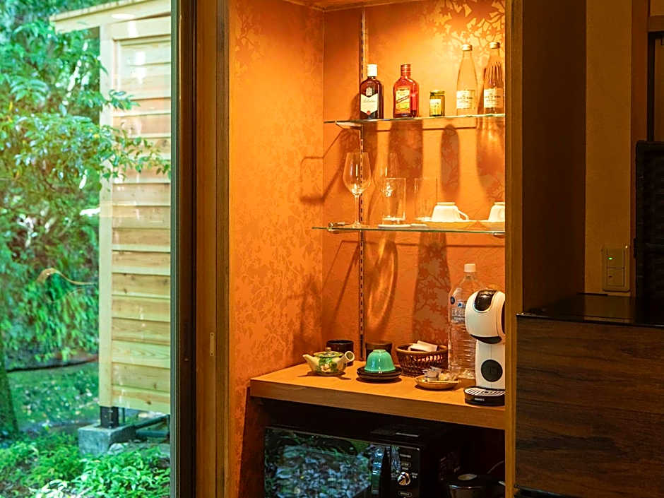 The hot tub and private open-air bath are the standout features of this family room. The spacious family room features air conditioning, tatami, a terrace with river views as well as a private bathroom boasting a bath. The unit has 6 beds.