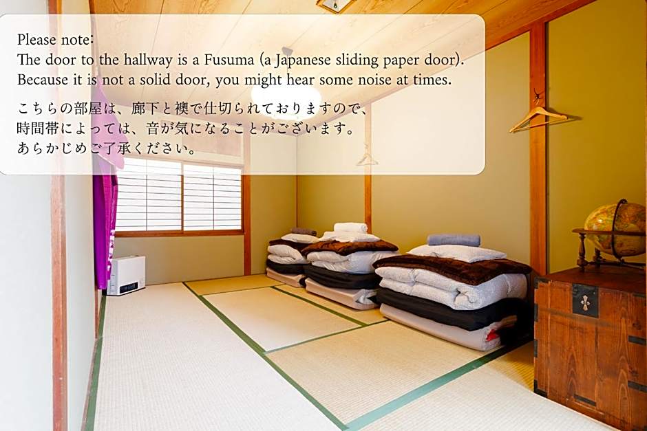 This triple room is air-conditioned and features tatami and heating. The unit offers 3 futons.