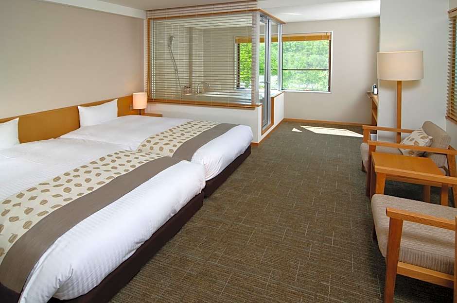 Travelers seeking a peaceful and rejuvenating getaway can choose from a variety of room types at Kamikochi Lemeiesta Hotel. From the cozy Deluxe 2 Double Beds room perfect for couples to the spacious Family room accommodating two adults and a child, each room offers modern amenities and comfort. With non-smoking options available and beautiful garden views, guests can unwind in tranquility after a day of exploring the natural beauty of Matsumoto.