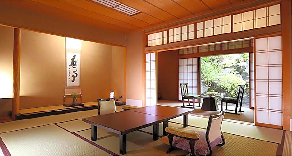 We very much us enjoyed our three night stay here. The situation is breathtaking, with views across the mountains and a beautiful, utterly charming 80 year old garden that goes up the hillside. The rooms were spacious, as were the public spaces - with lots of statues and pictures on show. The ryokan is quite a way from the station, but the owner runs a shuttle service to the Town Centre and to the local bus stop. The food was excellent, very tasty and exquisitely presented. The junior staff members were charming and eager to help. The building itself needs a little attention but the food, help from the staff and wonderful setting easily outweigh any small blemishes.