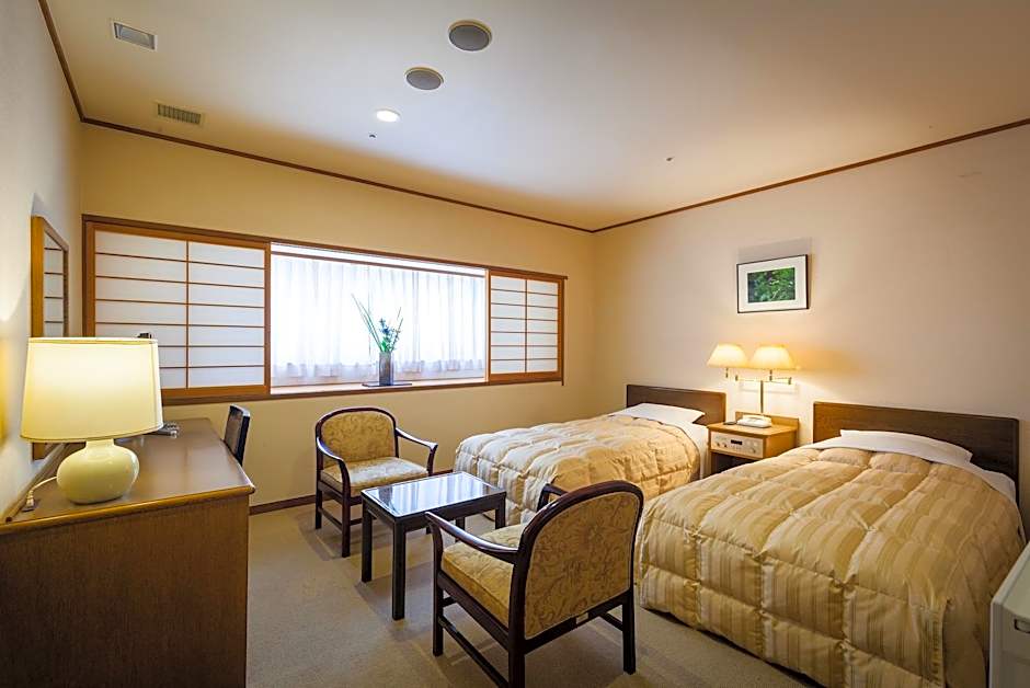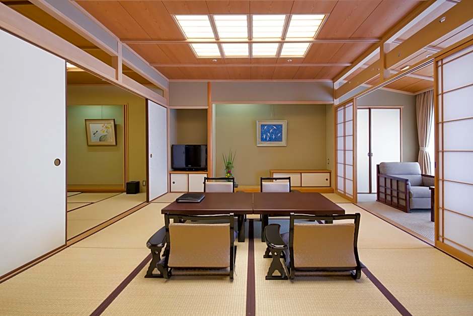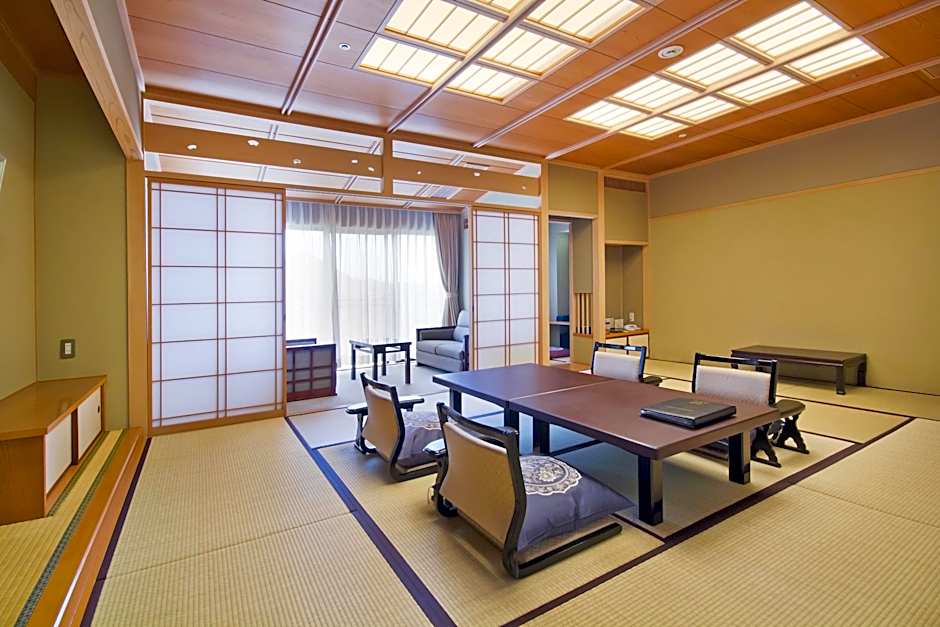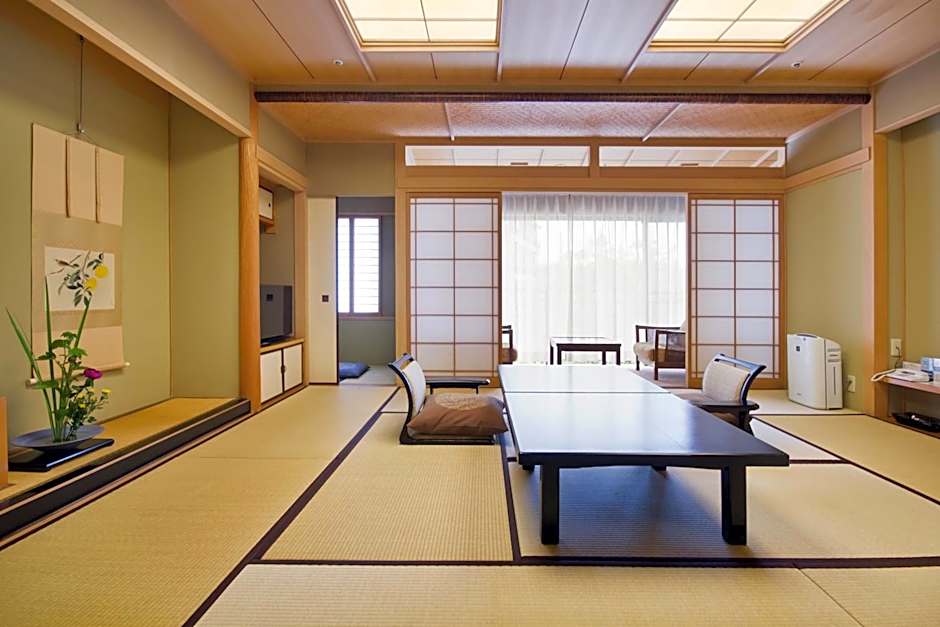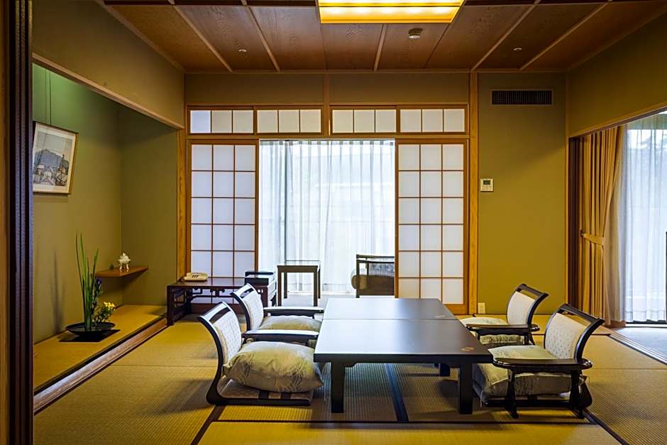 Lovely part-tatami room in a ryokan in the Dogo Onsen area of Matsuyama. The location is great with the Dogo Onsen Honkan, shopping area and tram stop all within 5 minutes' walk. There is also easy access by tram to sights and restaurants in central Matsuyama, as well as Matsuyama Station. Breakfast was great, the onsen and garden were nice for relaxing and the staff were helpful.