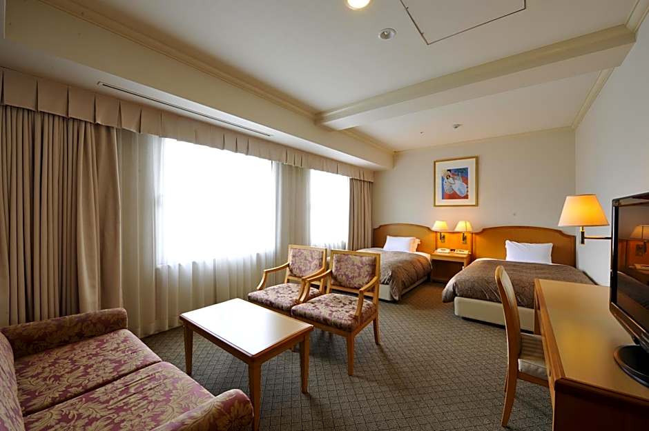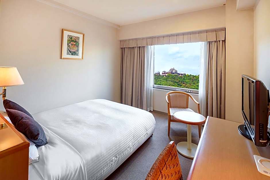 Upper floors are accessible by elevator, offering views that capture Matsuyama from a higher vantage point, while the short 0,4μίλ. stroll to the city center places key sights within easy reach.
